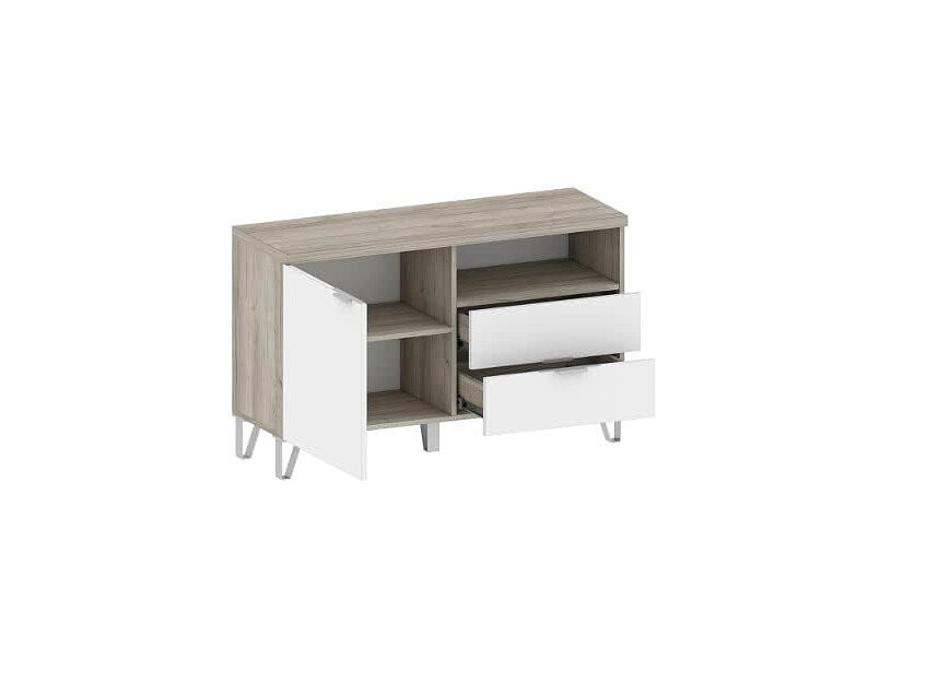 Тумба ТВ 2 ящика и полки Анима ТБ3021 дуб серый/белый 111х39х70 см