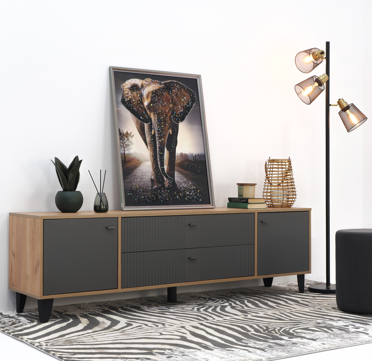 Тумба ТВ Парус-10 дуб крафт золотой/карбон вулкан 180х53х40