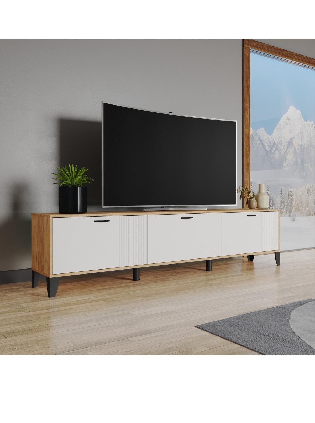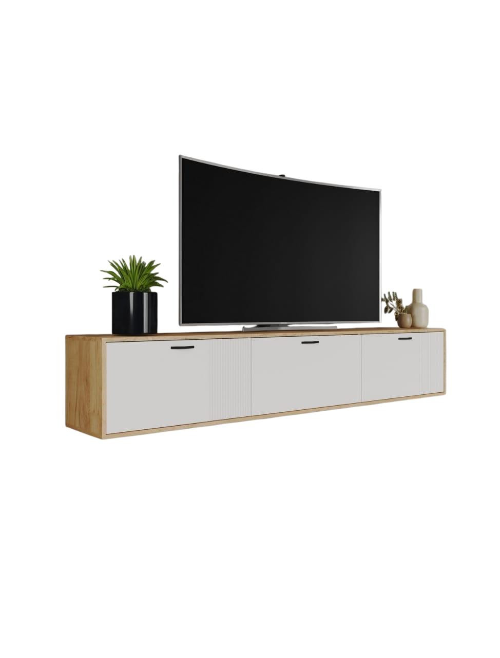 Тумба под телевизор ТВМ-9 в стильном исполнении дуб крафт золотой/карбон вулкан станет прекрасным дополнением для любой гостиной или спальни. Этот современный и функциональный предмет мебели обеспечивает достаточно места для хранения ваших аудио- и видеоустройств, а также смело выдержит вес крупного телевизора.