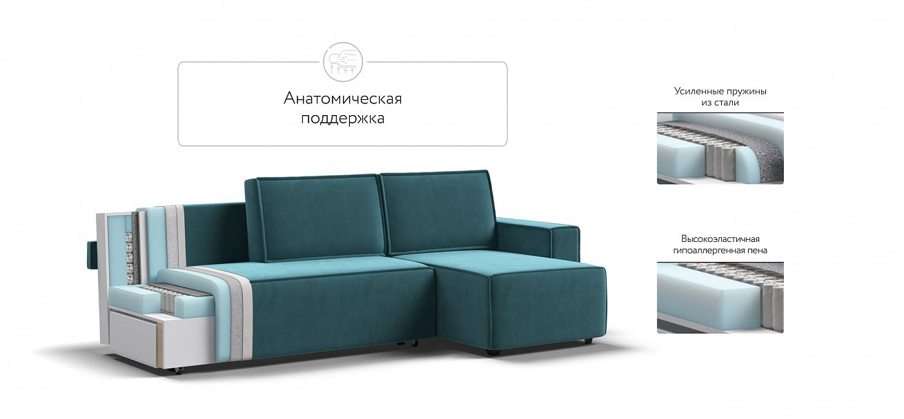 Угловой диван NORD 2.0 с мягкими широкими подлокотниками, строгой симметрией и минималистичной отделкой идеально дополнит современный интерьер в стиле лофт. Днем Вы с комфортом сможете провести время за просмотром любимого фильма, а ночью трансформировать диван в полноценное спальное место, благодаря анатомическому матрасу и надежному механизму еврокнижка. Диван имеет дизайн 360, что позволит расположить его в любой части гостиной. Универсальный угол позволит Вам самостоятельно определить положение угла при сборке.