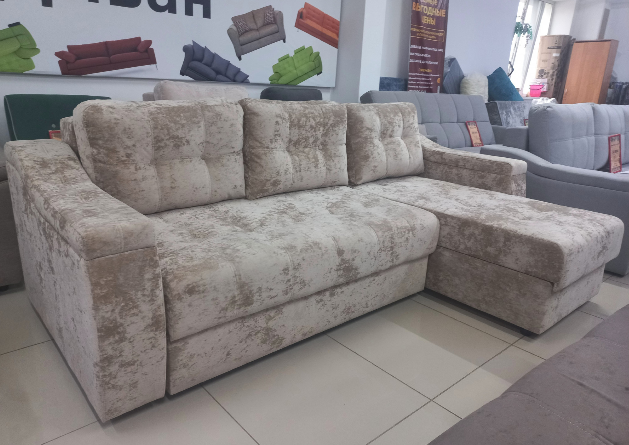 Угловой диван Орлеан каркас деревянный, основа НПБ, имеется место для хранения белья. Доставим в день покупки. Товар доступен в рассрочку или кредит.