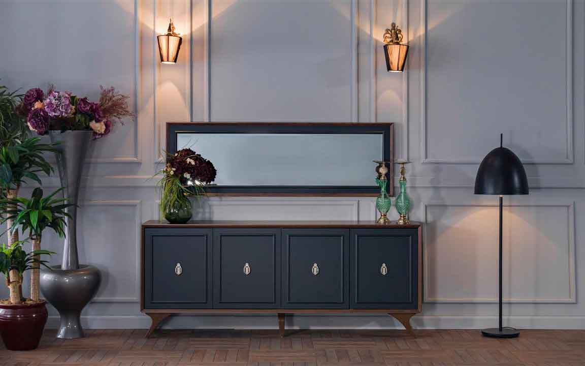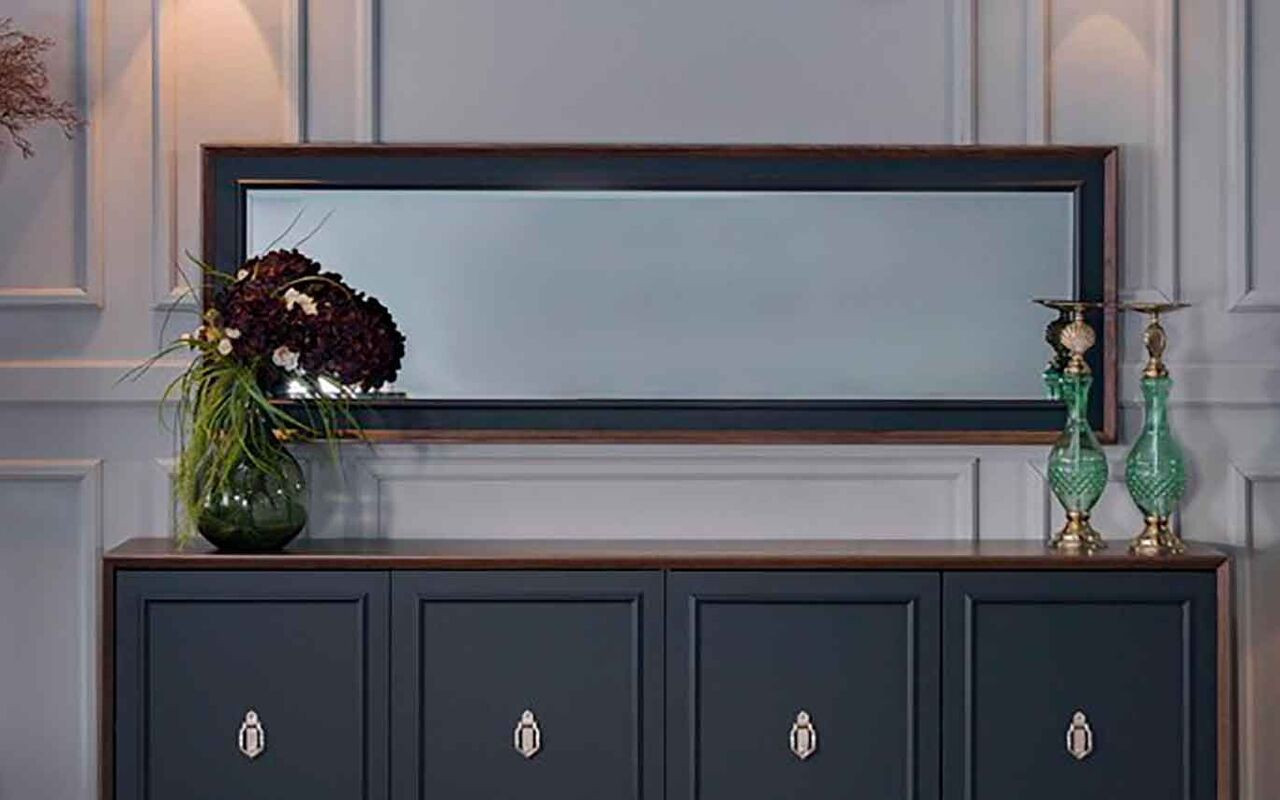 Зеркало буфета Alegro (Алегро) от фабрики Bellona. Коллекция Alegro выполнена в современном классическом стиле с использованием контрастных цветов ореха и антрацита. Ножки коллекции выполнены из массива, петли мягкого закрывания, а ящики буфета на телескопических направляющих. Большое зеркало для буфета (ALEG-11) Alegro это отдельный элемент интерьера в любом помещении Вашего дома.
